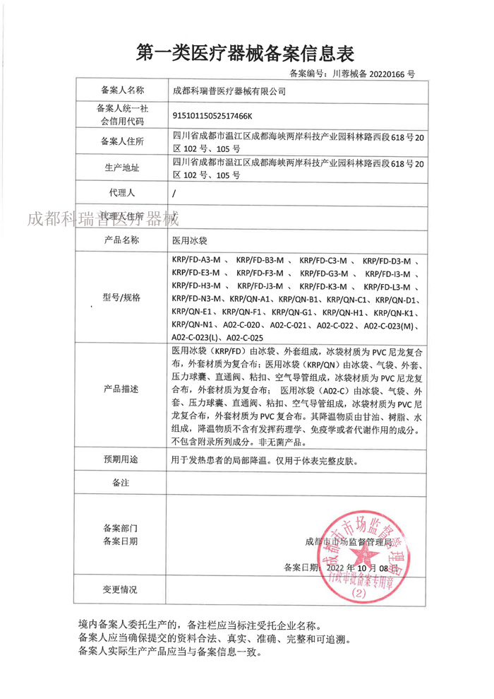 一類醫(yī)療器械備案表